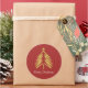 A whimsy Christmas tree design with faux foil effect and a festive red background.