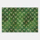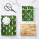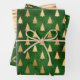 Christmas Tree Holly Patterns Green Gold Wrapping Paper Sheets