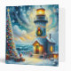 Christmas Tree Lighthouse Nautical Coastal Blue 3 Ring Binder