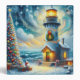 Christmas Tree Lighthouse Nautical Coastal Blue