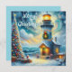 Christmas Tree Lighthouse Nautical Coastal Blue Holiday Card