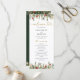 Pine greenery and glowing Christmas tree lights create a warm evergreen look for this winter wedding program. Perfect for Christmas weddings, rustic lodge ceremonies, and forest-inspired December celebrations. This vertical 4×9 layout allows you to list your ceremony order, wedding party names, and special notes. All text fields are fully editable, while decorative script details remain part of the artwork. Coordinates with the entire Christmas Tree Lights Pine suite — invitations, menus, table numbers, signage, and seating charts.