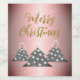 Modern Christmas Tree Metallic Pink Script Holiday Wine Label. Three simple grey Christmas trees with white balls. The background is metallic pink and the text Merry Christmas is in trendy script. Customize with your text.