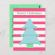 Christmas Tree Modern Stripe Green Greeting Postcard