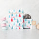 Cute and modern Christmas wrapping paper featuring a Christmas tree pattern in blue, red and pink on the white background in the simple Nordic style. Easily personalize the text. - Kate Eden Art