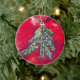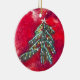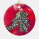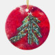 Image of a felted wool and silk Christmas Tree on a ceramic circle ornament base. Two sided. Same image on each side.