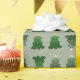 A decorative yet simple motive showing repeated pattern of Christmas trees. Trees are digitally drawn, they have various shades of green. There is a shiny star in top of each tree. The solid silvery gray background can be replaced.