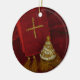 The Christmas tree is a symbol for the true gift of the baby Jesus. Red, gold, and white colors make a rich display. The cross is a Christian symbol. . I wish you a merry Christmas in royal red with golden tassels. Photo taken in my studio.