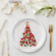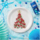 A Christmas tree made up of ornaments and gift packages decorates this pretty paper plate