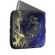 Christmas Tree Party Gold Stars Navy Blue Holidays laptop sleeve. Unique, beautiful, stylish design. Easy to be personalized. Font style, size, and colors can be changed. Matching items are available.