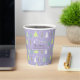 This paper holiday cup features an offset pattern of Christmas trees of all different styles and modern colors of violet, lime green and white. A template is provided for you to add your own favorite holiday greeting, name and/or other text. Search ID175 to see other products with this design.