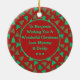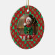 A double sided tree ornament that features a fun red and green christmas tree pattern with your son's photo in the center. On the back a christmas message to your little boy. To change or delete the text click on the personalize button. This design contains A.I.
