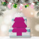 Change up your Christmas wishes with this modern Christmas design. Still using the traditional seasonal colors this design uses white and pink and blue. The blue tree has decorations hanging of it.