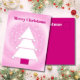 Christmas Tree Pink Stars Greeting Postcard
