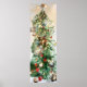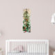 Wall art depicting a whimsical Christmas tree with a mischievous kitty and even Santa helping with the tree decoration