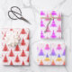 Christmas Tree Red Pink Blue Pattern Design Wrapping Paper Sheets
