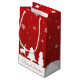 Modern minimalist simple Christmas illustration featuring white silhouettes of reindeer, tree, snowman and snowflakes with Merry Christmas greeting on a red background.