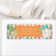 Holiday return address labels with a pretty ornaments, snowflakes, a Christmas tree background, and orange frame where you can easily add your name and address.