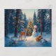 Christmas Tree Scene Cute Deer Fawn Snowman