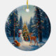 Christmas Tree Scene Cute Deer Fawn Snowman Ceramic Ornament