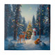 Christmas Tree Scene Cute Deer Fawn Snowman Ceramic Tile