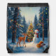 Christmas Tree Scene Cute Deer Fawn Snowman Drawstring Bag