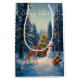 Christmas Tree Scene Cute Deer Fawn Snowman Medium Gift Bag