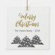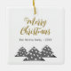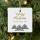 Modern Christmas Tree Script Minimalist Festive Family Ceramic Ornament. Three simple grey Christmas trees with white balls. The text Merry Christmas is in a trendy script. Customize with your text.