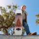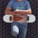 A festive skateboard decked out like a Christmas tree, complete with colorful lights, ornaments, and a star topper. Perfect for cruising around during the holiday season!