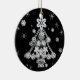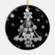 Select a background color for this lacy Christmas tree and snowflake design on a round ornament. It shows a photograph of a white Christmas tree ornament with digital art snowflakes surrounding it. Fill in the template block with updated information or click "Customize it!" to select a font style, size and color you prefer and a different background color for the ornament on both sides.