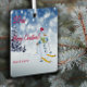 Christmas Metal Square Ornament depicting snowmen against a blue backdrop. The festive ornament showcases snowmen figures, set upon a blue-colored background, perfect for the Christmas season. It also features a winter tree and delicate snowflakes, adding to its charm. This square metal ornament is ideal for adding a touch of winter wonderland to your Christmas decorations. The design incorporates both a winter tree and snowflake patterns, completing the holiday scene.