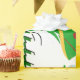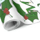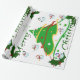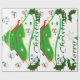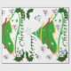 This design features a green christmas tree with red, gold and white ribbon and Christmas balls decorating the tree. Snowmen and holly decorate this design. "Merry Christmas" is printed on this design in green and white. This wrapping paper is available in assorted styles and colored backrounds and borders.