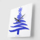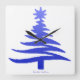 Christmas Tree Stencil Cobalt Blue Square Wall Clock