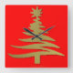 Christmas Tree Stencil Gold Square Wall Clock