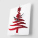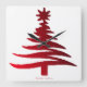 Christmas Tree Stencil Red Square Wall Clock