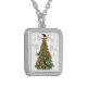 Christmas Tree with Cardinal Birds Silver Plated Necklace