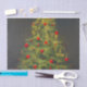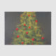 Christmas themed tissue paper design featuring Christmas tree decorated with red Christmas baubles on a dark gray background.