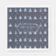 This paper napkin features a pattern of stylized Christmas trees and snowflakes in shades of sky blue and slate on a navy blue background. Optional 'Happy Holidays' text and a label have been provided to add your name and/or other text. Search ID861 thru ID864 to see additional color options and other products in this modern, Christmas design set.
