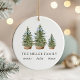 Add a charming touch to your holiday with this personalized ornament featuring a delightful watercolor festive green Christmas tree for each family member adorned with a beautiful blue bow.