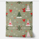 A charming holiday pattern featuring decorated Christmas trees, red bows, snowflakes, and pine branches on a soft green background. This festive design captures the warmth of the season, perfect for Christmas wrapping paper, holiday decor, or seasonal crafts.