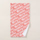 Colorful modern Christmas trees "Merry Christmas" and snowflakes pink holiday bath towel set. The bath towel displays a cute pattern of colorful Christmas stylized trees in light blue, orange and yellow on pink. The hand towel features the text "Merry Christmas" in bold typogtaphy and the wash cloth snow-snowflakes. Personalize it with your text. Please note that if your text takes more or less space customize it to increase or decrease the text size accordingly.