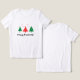 Embrace the joy of the season with this charming and minimalist Christmas t-shirt. The clean and simple design features a trio of festive Christmas trees in classic holiday red and green, lightly decorated and topped with stars. A sprinkle of delicate snowflakes falls above, while the greeting "Merry Christmas!" is written below in a friendly, handwritten script. This tee's understated elegance makes it perfect for casual holiday gatherings, Christmas shopping, or a comfortable and festive look all season long.