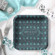 This paper plate features a pattern of stylized Christmas trees and snowflakes with a textured-effect in shades of watchet blue on a deep teal background. Optional 'Happy Holidays' text and a label have been provided to add your name and/or other text. Search ID861 thru ID864 to see additional color options and other products in this modern, Christmas design set.