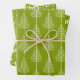 Merry Christmas, trees and polka dots olive green holiday Wrapping Paper Sheets. The first sheet features white winter trees on green background. The second showcases the text :"Merry Christmas" in bold typogtaphy and the third displays polka dots-snow.