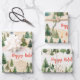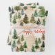 Christmas trees in a rustic design. They stand in the winter woods in vintage, watercolor pictures, each a little different, but compatible as a group. Good for "Happy Holidays" gift wrapping. All of the orange-red script text can be edited. You can keep the greeting phrases as they are on each sheet or change them. For example, you can substitute personal or family names on one or more of the three sheets. Also, correct the date to the one that you want; if you want to, you could substitute initials instead of the date.