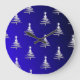Christmas Trees Silver on Cobalt Blue Large Clock