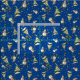 Christmas fabric for crafts and / or sewing projects. Gold specks background on blue with a pattern of snowmen and Christmas trees. Easily change the background color to your preference, and select the fabric type and size.