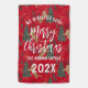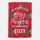 This colorful cartoon-style Christmas tree pattern has a customizable red background.
