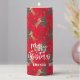 This colorful cartoon-style Christmas tree pattern has a customizable red background.