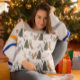 This colorful cartoon-style Christmas tree pattern with a customizable white background.